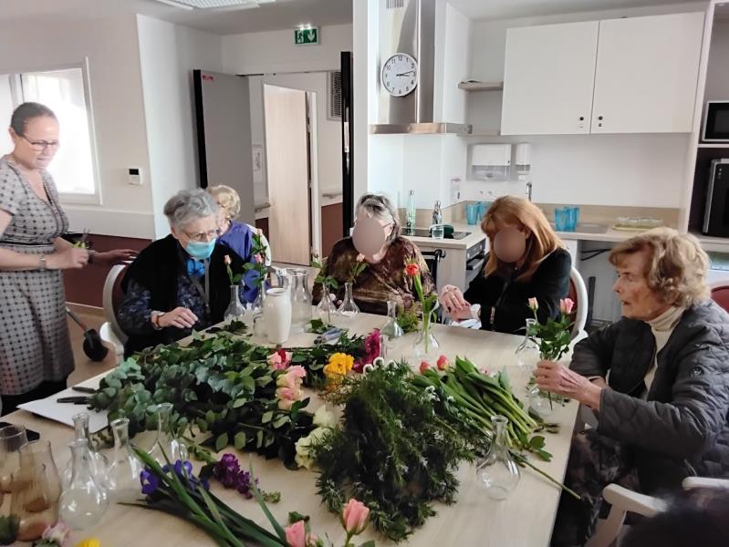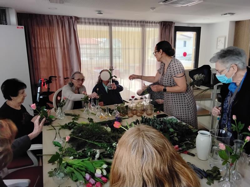 Nouveauté 2026 : Mme Emica, bénévole à la résidence, organise des ateliers floraux 2 mercredis par mois. Lors de ces ateliers les résidents confectionnent bouquets et compositions florales qui sont ensuite disposés dans toute la résidence et sur les tables du restaurant.