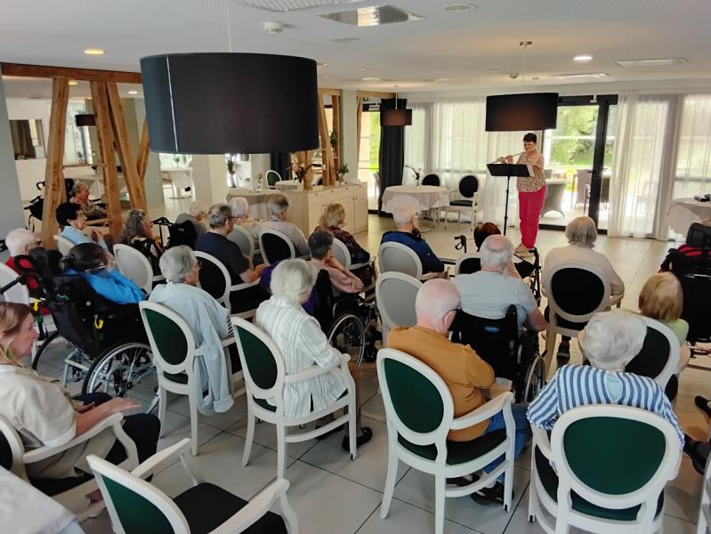 Mme Bourrez, fille d'une résidente est venue gracieusement nous interpréter des airs de classique à la flûte traversière.