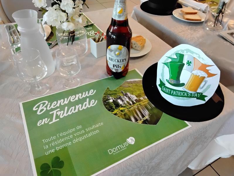 A la Saint Patrick, la résidence a suivi la tradition irlandaise. Les résidents ont dégusté une bière bien fraiche lors d'un repas irlandais sur fond de musique celtique. Un documentaire faisant découvrir les beaux paysages d'Irlande a clôturé la journée.