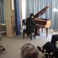 Publiée le 07/04/2022Un jeune étudiant, bénévole, est venu jouer du piano dans le salon de la résidence pour le plus grand plaisir de tous. Il reviendra occasionnellement nous rendre visite pour renouveler ce moment musical. Lire la suite